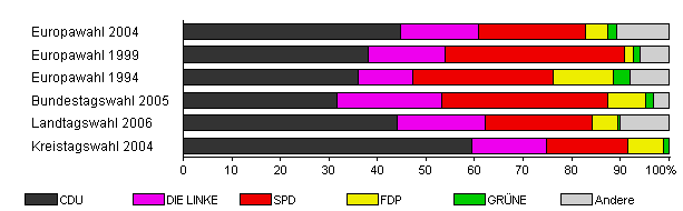 | Kreistagswahl 2004 | 52,3 | 59,6 | 15,4 | 16,8 | 7,2 | 1,1 | x | |