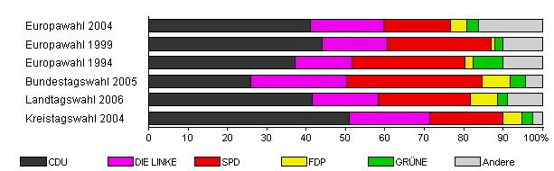| Landtagswahl 2006 | 47,7 | 41,5 | 16,7 | 23,5 | 6,8 | 2,6 | 9,0 | |
