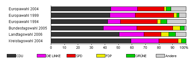 | Landtagswahl 2006 | 40,9 | 50,5 | 18,4 | 12,6 | 5,8 | 4,9 | 7,8 | |