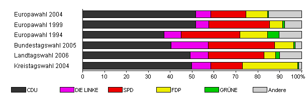 | Landtagswahl 2006 | 43,1 | 49,1 | 8,3 | 25,4 | 5,3 | 1,8 | 10,1 | |