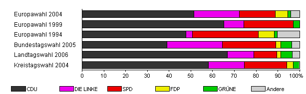 | Landtagswahl 2006 | 59,8 | 66,7 | 12,3 | 10,5 | 1,8 | 5,3 | 3,5 | |
