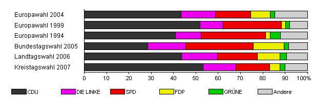 | Landtagswahl 2006 | 50,3 | 43,7 | 15,9 | 17,9 | 10,3 | 2,8 | 9,5 | |