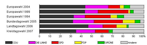 | Kreistagswahl 2007 | 42,1 | 34,9 | 18,3 | 13,0 | 0,4 | 3,5 | 29,9 | |