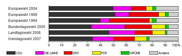 | Kreistagswahl 2007 | 28,1 | 33,8 | 15,9 | 16,6 | 9,3 | 2,0 | 22,5 | |