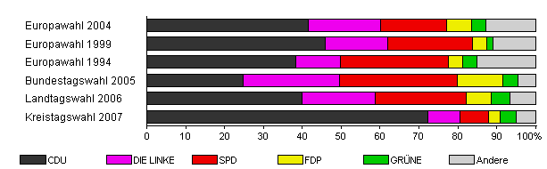| Kreistagswahl 2007 | 40,7 | 72,3 | 8,2 | 7,5 | 3,0 | 4,0 | 5,0 | |