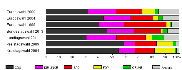 | Kreistagswahl 2004 | 49,3 | 54,6 | 12,4 | 14,8 | 15,3 | 1,2 | 1,8 | |