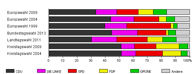| Kreistagswahl 2009 | 34,9 | 51,3 | 9,5 | 15,3 | 16,5 | 6,2 | 1,2 | |