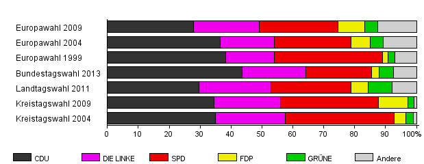 | Kreistagswahl 2009 | 43,0 | 34,4 | 21,6 | 31,7 | 9,6 | 1,9 | 0,8 | |