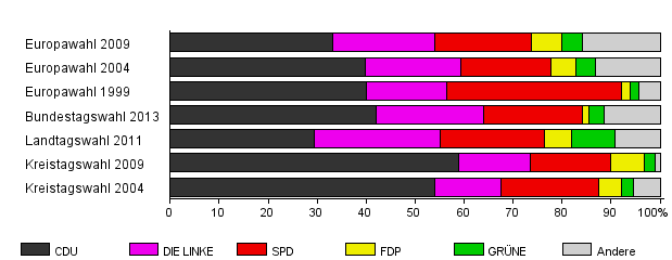 | Kreistagswahl 2009 | 39,8 | 58,8 | 14,6 | 16,4 | 7,0 | 2,2 | 0,9 | |