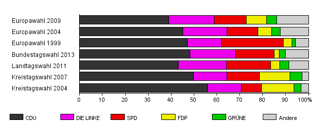 | Kreistagswahl 2004 | 53,5 | 56,0 | 14,7 | 8,8 | 14,2 | 3,1 | 3,1 | |
