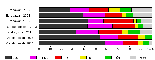 | Kreistagswahl 2004 | 50,2 | 58,5 | 15,4 | 13,6 | 4,5 | 5,2 | 2,7 | |