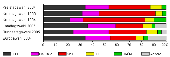 | Kreistagswahl 2004 | 43,5 | 34,0 | 19,1 | 33,8 | 9,4 | 3,6 | x | |