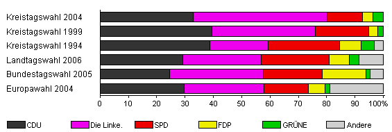 | Kreistagswahl 2004 | 58,9 | 32,8 | 47,4 | 12,5 | 3,7 | 3,5 | x | |