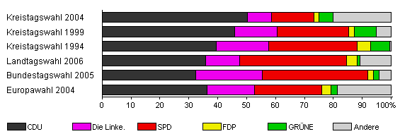 | Kreistagswahl 2004 | 65,8 | 50,2 | 8,3 | 14,8 | 1,8 | 4,7 | 20,2 | |