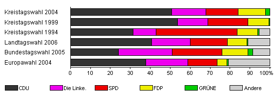 | Kreistagswahl 1994 | 75,9 | 31,3 | 11,7 | 40,6 | 10,2 | 0,9 | 5,3 | |