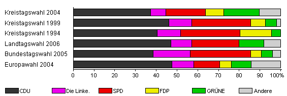| Kreistagswahl 2004 | 53,8 | 37,2 | 7,5 | 19,0 | 8,8 | 17,1 | 10,4 | |