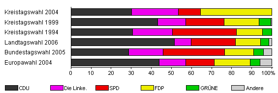 | Kreistagswahl 2004 | 69,4 | 30,2 | 23,3 | 11,1 | 35,5 | x | x | |