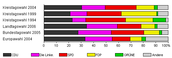 | Kreistagswahl 2004 | 46,9 | 30,3 | 18,9 | 25,0 | 14,5 | 2,8 | 8,5 | |