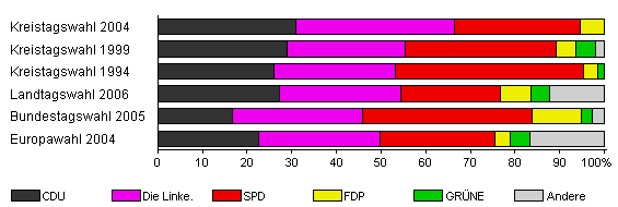 | Kreistagswahl 2004 | 49,0 | 30,8 | 35,5 | 28,3 | 5,4 | x | x | |