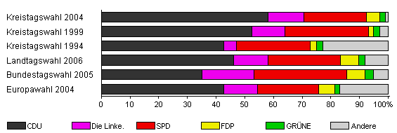 | Kreistagswahl 2004 | 56,1 | 58,0 | 12,6 | 21,7 | 4,8 | 1,9 | 1,0 | |