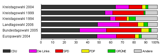| Kreistagswahl 2004 | 54,9 | 64,0 | 11,6 | 11,2 | 3,2 | 1,9 | 8,1 | |