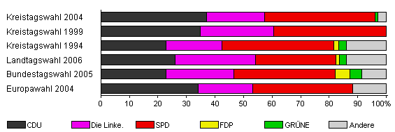 | Kreistagswahl 2004 | 55,0 | 37,0 | 20,3 | 38,7 | - | 1,0 | 3,0 | |