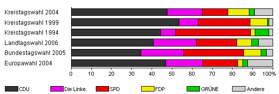 | Kreistagswahl 2004 | 45,9 | 47,6 | 17,3 | 12,8 | 10,4 | 2,9 | 9,1 | |