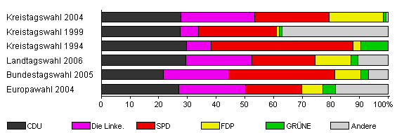 | Kreistagswahl 1994 | 79,9 | 29,8 | 8,4 | 49,6 | 2,5 | 9,7 | x | |