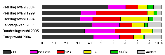| Kreistagswahl 2004 | 64,0 | 55,2 | 14,8 | 10,3 | 7,9 | 5,2 | 6,6 | |