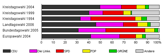 | Kreistagswahl 2004 | 34,5 | 49,4 | 18,2 | 12,8 | 7,6 | 2,9 | 9,2 | |