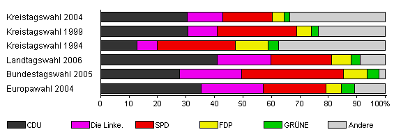 | Kreistagswahl 2004 | 37,9 | 30,5 | 12,4 | 17,3 | 4,3 | 1,9 | 33,5 | |