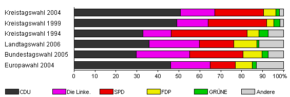 | Kreistagswahl 2004 | 49,4 | 50,8 | 16,4 | 23,2 | 5,8 | 1,9 | 1,9 | |