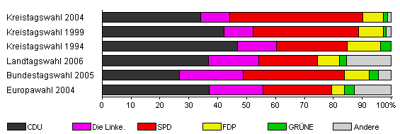| Kreistagswahl 2004 | 51,5 | 34,0 | 10,2 | 46,0 | 7,1 | 1,5 | 1,2 | |