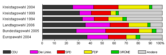 | Kreistagswahl 2004 | 59,1 | 25,3 | 17,4 | 20,5 | 26,1 | 2,0 | 8,7 | |