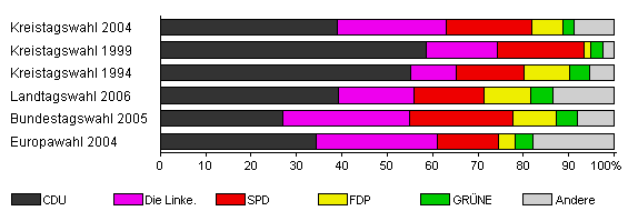 | Kreistagswahl 1994 | 73,1 | 55,1 | 10,2 | 14,8 | 10,0 | 4,5 | 5,4 | |