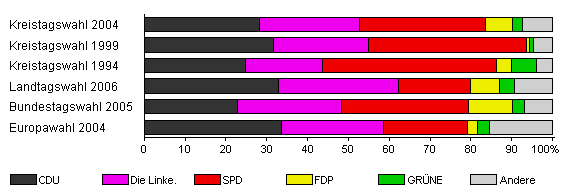 | Kreistagswahl 1994 | 83,5 | 24,9 | 18,7 | 42,6 | 3,8 | 6,0 | 4,0 | |