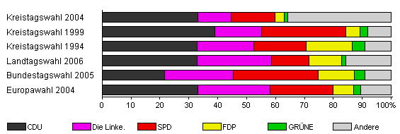 | Kreistagswahl 2004 | 70,8 | 33,1 | 11,5 | 15,2 | 3,3 | 1,0 | 35,9 | |