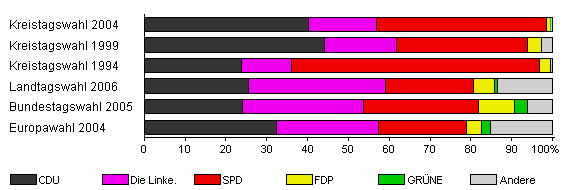 | Kreistagswahl 2004 | 50,3 | 40,2 | 16,7 | 41,7 | 0,8 | 0,4 | 0,3 | |