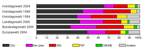 | Kreistagswahl 2004 | 66,8 | 65,1 | 9,8 | 13,0 | 7,7 | 1,8 | 2,7 | |