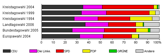 | Kreistagswahl 2004 | 49,3 | 35,1 | 16,3 | 43,7 | 3,0 | 0,9 | 0,9 | |