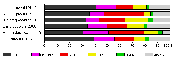 | Kreistagswahl 1999 | 55,3 | 35,8 | 11,6 | 31,8 | 5,0 | 2,1 | 13,8 | |