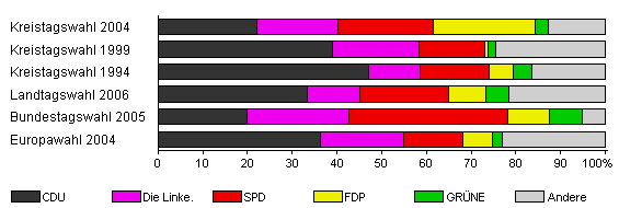 | Kreistagswahl 1994 | 79,4 | 47,0 | 11,7 | 15,2 | 5,4 | 4,3 | 16,3 | |