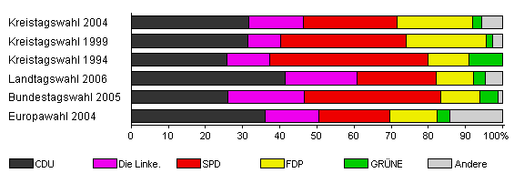 | Kreistagswahl 2004 | 51,9 | 31,6 | 14,7 | 25,3 | 20,3 | 2,4 | 5,8 | |
