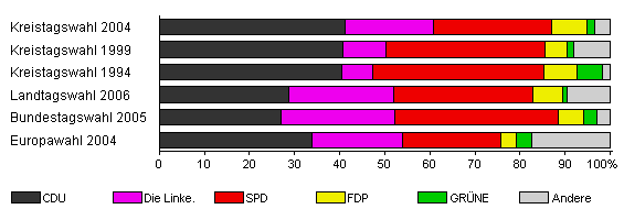 | Kreistagswahl 2004 | 46,4 | 41,2 | 19,7 | 26,1 | 7,8 | 1,8 | 3,4 | |