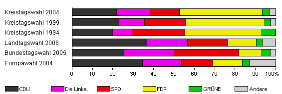 | Kreistagswahl 2004 | 45,7 | 21,9 | 16,3 | 14,6 | 40,6 | 3,4 | 3,3 | |