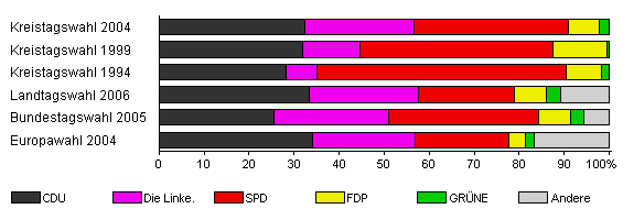 | Kreistagswahl 2004 | 38,8 | 32,3 | 24,3 | 34,4 | 6,7 | 2,3 | x | |