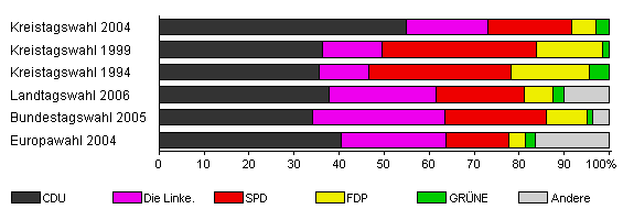 | Kreistagswahl 2004 | 63,3 | 54,9 | 18,2 | 18,6 | 5,4 | 2,9 | x | |