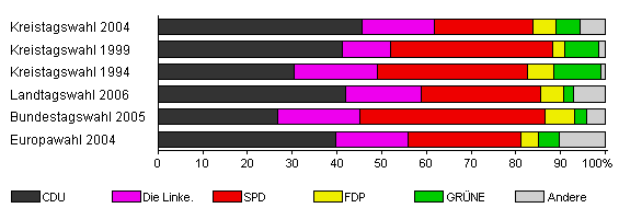 | Kreistagswahl 2004 | 42,4 | 45,5 | 16,2 | 22,2 | 5,0 | 5,5 | 5,6 | |