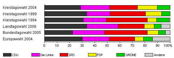 | Kreistagswahl 2004 | 34,6 | 28,7 | 22,9 | 22,3 | 15,8 | 10,2 | x | |