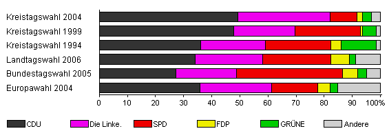 | Kreistagswahl 2004 | 49,4 | 49,2 | 32,9 | 9,5 | 2,1 | 3,2 | 3,1 | |